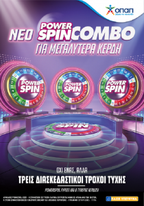 Η ανανεωμένη στοιχηματική εμπειρία του POWERSPIN είναι διαθέσιμη εδώ και λίγες ημέρες στα καταστήματα ΟΠΑΠ. Το POWERSPIN COMBO δεν διαθέτει πλέον μόνο έναν τροχό, αλλά τρεις, προσφέροντας μια νέα, εξελιγμένη εμπειρία διασκέδασης μέσω μιας νέας οθόνης.