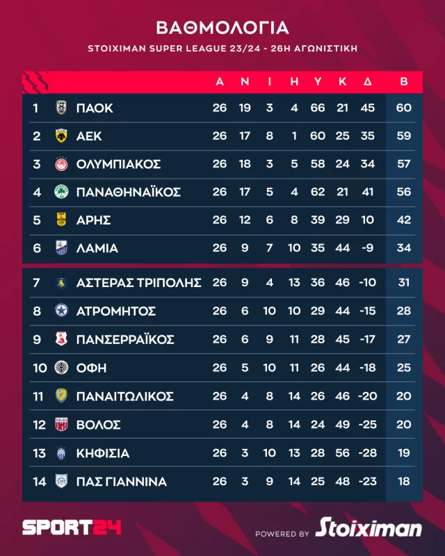 Δείτε πώς θα πάνε οι ομάδες στα playoffs και τα playouts.