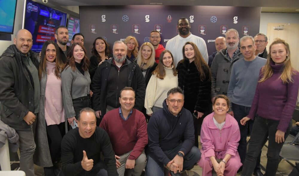 Ο δημοσιογράφος του Gazzetta Γιάννης Σαπουντζάκης με τους Κατερίνα Ζαρίφη, Κώστα Φραγκολιά και Σοφοκλή Σχορτσιανίτη