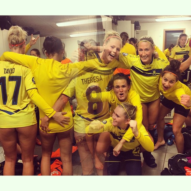 Με αφορμή τη νίκη με 3-2 επί της Φορτούνα η 28χρονη διεθνής μπακ της ομάδας, Τερέσα Νίλσεν, επέλεξε να… σκανδαλίσει τους ακόλουθούς της στα social media αναρτώντας μία καυτή φωτογραφία από τους πανηγυρισμούς της μαζί με τις συμπαίκτριές της στα αποδυτήρια μετά το συγκεκριμένο αποτέλεσμα. Την σχετική φωτό την ανάρτησε τόσο στο Instagram όσο και στο Facebook της, γράφει το gazetta.