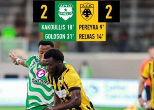 Το γκολ κατακυρώθηκε τρία λεπτά αργότερα έπειτα απ’ τον έλεγχο του VAR, το οποίο επιβεβαίωσε ότι ο Άαρονς κάλυπτε τον Σέρβο μεσοεπιθετικό του Παναθηναϊκού.