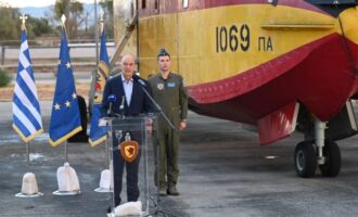 Ο Νίκος Δένδιας στην 355 ΜΤΜ – Ευχαρίστησε «ιπταμένους και τεχνικούς των πυροσβεστικών αεροσκαφών για τον καθημερινό αγώνα τους»