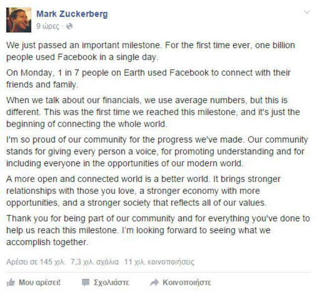Αυτό, σύμφωνα με τον ιδρυτή του facebook, Μαρκ Ζάκερμπεργκ, συνέβη της περασμένη Δευτέρα.