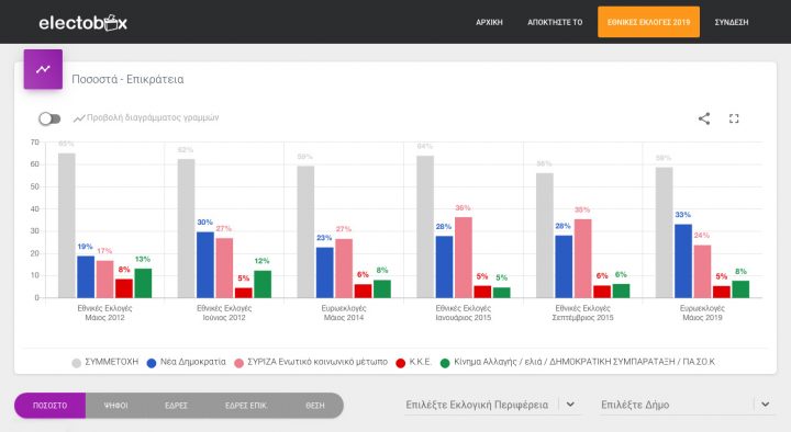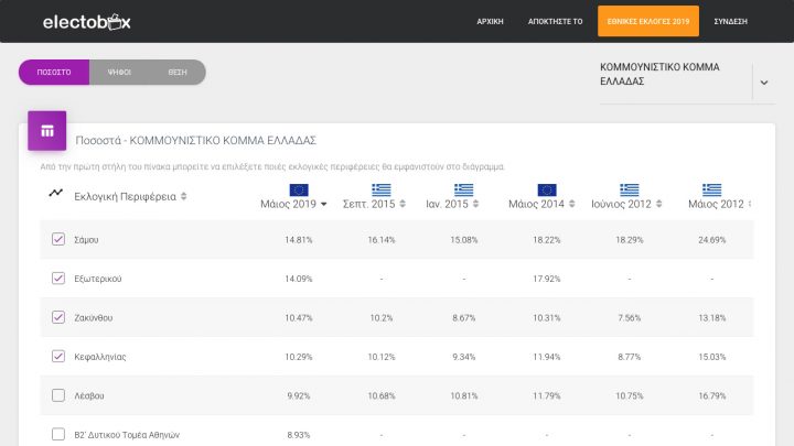 Οι επισκέπτες μπορούν να δουν τα συγκριτικά αποτελέσματα κάθε κόμματος ανά περιφέρεια, από το 2012 έως σήμερα.