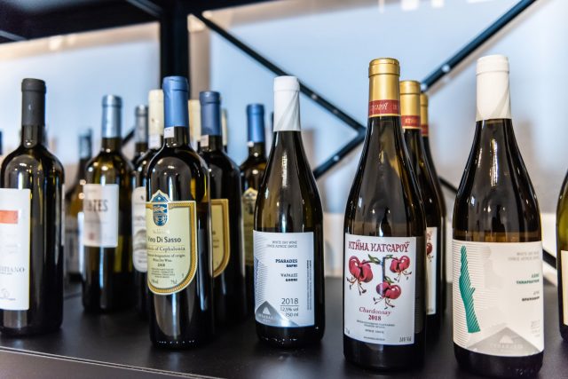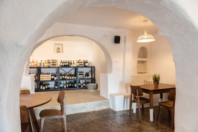 Η κάβα του περιλαµβάνει κρασιά από τον τηνιακό και τον ελληνικό αµπελώνα.