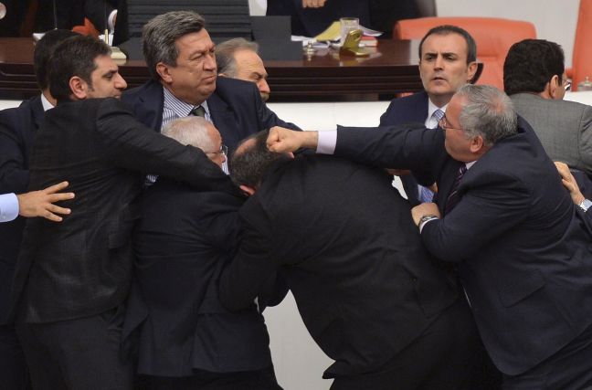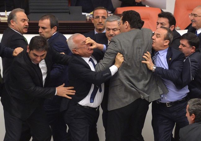 Για δεύτερη φορά μέσα σε μία μόλις εβδομάδα βουλευτές στην Τουρκία μετατρέπουν για το ίδιο νομοσχέδιο τη Βουλή σε… ρινγκ. Η παγκόσμια πρωτοτυπία που κατάφεραν οι Τούρκοι βουλευτές κάνει το γύρο του διαδικτύου.