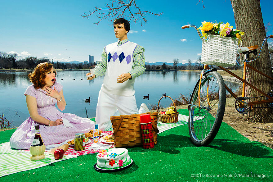 Η 43χρονη Suzanne Heintz, φωτογραφίζει την πλασματική οικογενειακή της ζωή εδώ και 14 χρόνια. Με τη διαφορά ότι ο άνδρας της και η κόρη της είναι μανεκέν βιτρίνας.