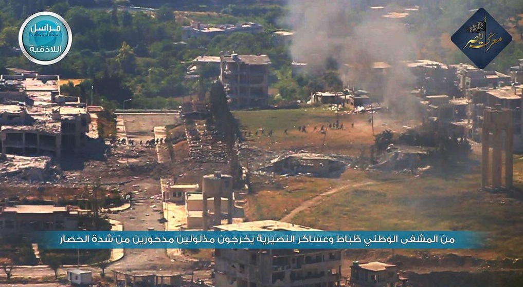 Πριν από ένα μήνα 300 τουλάχιστον Σύροι κυβερνητικοί (στρατιωτικοί και δημόσιοι υπάλληλοι) με τις οικογένειές τους, μετά την κατάληψη της πόλης τους από την Αλ Νούσρα – Αλ Κάιντα, κατέφυγαν στο νοσοκομείο της πόλης όπου και οχυρώθηκαν για να μην πέσουν στα χέρια των τζιχαντιστών.