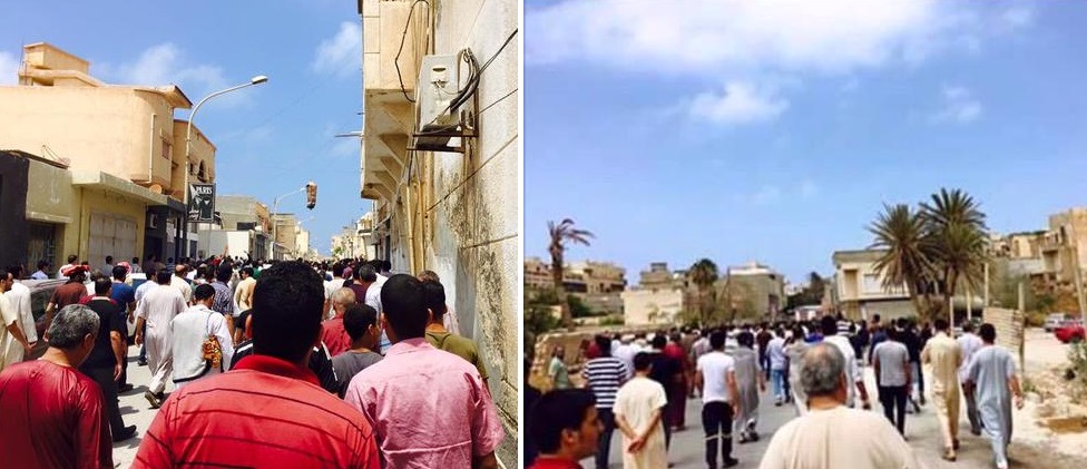 Η διαδήλωση ενώ πορευόταν προς το αρχηγείο του Ισλαμικού Κράτους στη Ντέρνα.