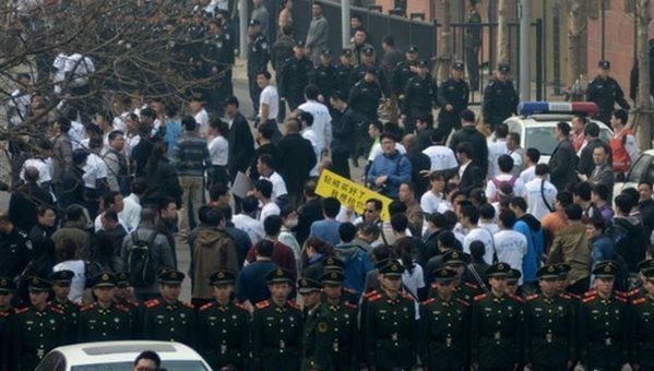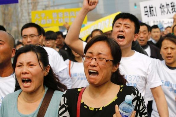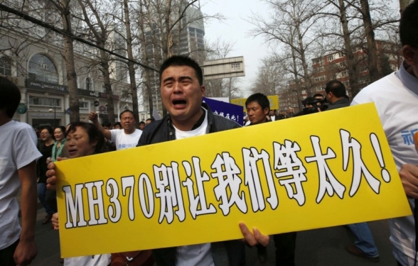 Νωρίτερα, λίγες ώρες αφού ο πρωθυπουργός της Μαλαισίας Νατζίμπ Ραζάκ ανακοίνωσε ότι το Boeing 777 της Malaysia Airlines που αγνοούνταν από τις 8 Μαρτίου συνετρίβη στον νότιο Ινδικό Ωκεανό, ένας εκ των συγγενών των Κινέζων επιβατών διάβασε ανακοίνωση με την οποία καταγγέλλουν την μαλαισιανή κυβέρνηση και τον στρατό ότι «συνεχώς προσπαθούσαν να καθυστερήσουν, να κρύψουν και να συγκαλύψουν την αλήθεια».