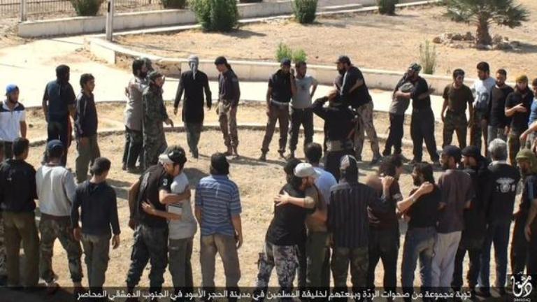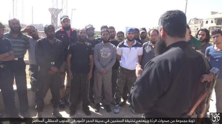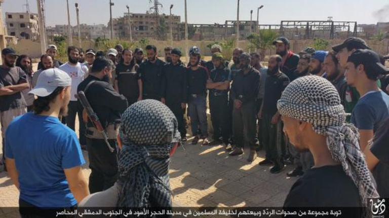 Την Τρίτη το Ισλαμικό Κράτος ανάρτησε φωτογραφίες στο διαδίκτυο που δείχνει την προσχώρηση στις τάξεις του δεκάδων “μετριοπαθών ανταρτών” στην πόλη Αλ Χατζάρ, στα νότια της Δαμασκού.