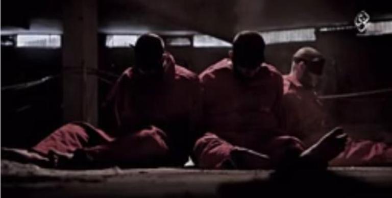 Στην πρώτη εικόνα βλέπετε τρεις ομήρους να πνίγονται ζωντανοί μέσα σε ένα κλουβί.