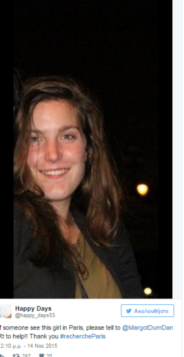 Χρησιμοποιώντας το hashtag #rechercheParis, που σημαίνει ψάξε το Παρίσι, αναρτούν φωτογραφίες ανθρώπων που μετά από τόσες ώρες δεν έχουν δώσει σημάδια ζωής.