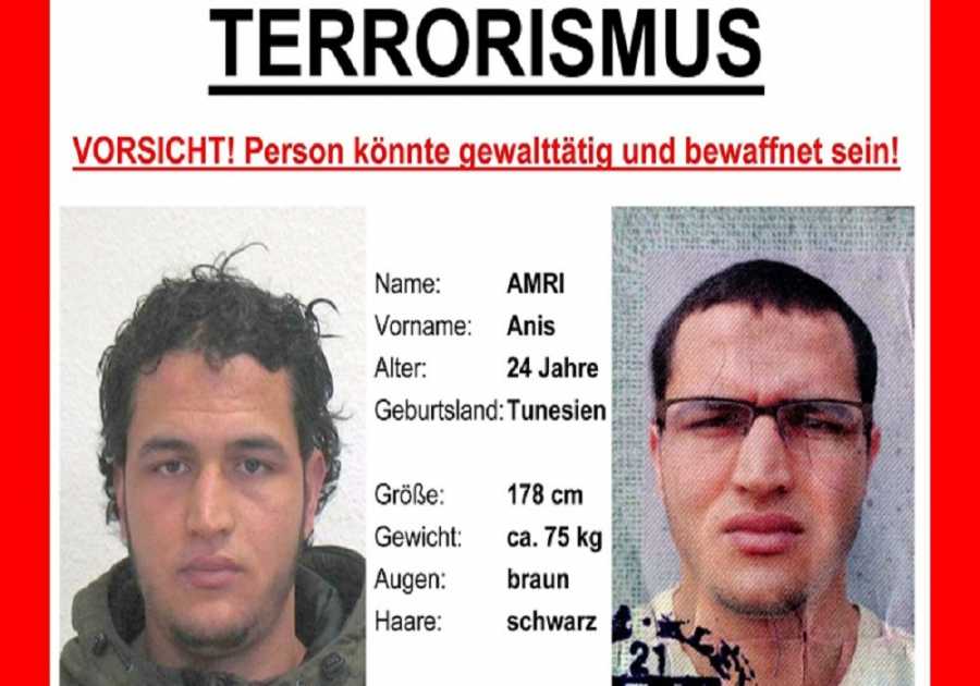 Η γερμανική ομοσπονδιακή εισαγγελία ανακοίνωσε ότι αναζητείται ο 24χρονος Ανις Αμρι, από την Τυνησία και ότι προσφέρονται 100.000 ευρώ σε όποιον δώσει πληροφορίες γι’ αυτό το πρόσωπο. Ο καταζητούμενος έχει ύψος 1,78 και βάρος περίπου 75 κιλά.