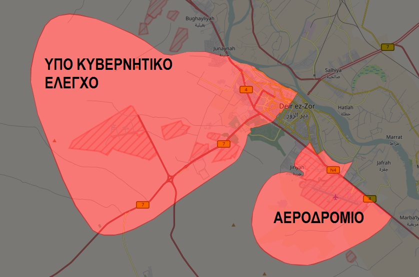 Τη Δευτέρα το Ισλαμικό Κράτος κατάφερε να “κόψει” την πολιορκημένη πόλη στα δύο, απομονώνοντας το στρατιωτικό αεροδρόμιο από τις υπό κυβερνητικό έλεγχο συνοικίες.