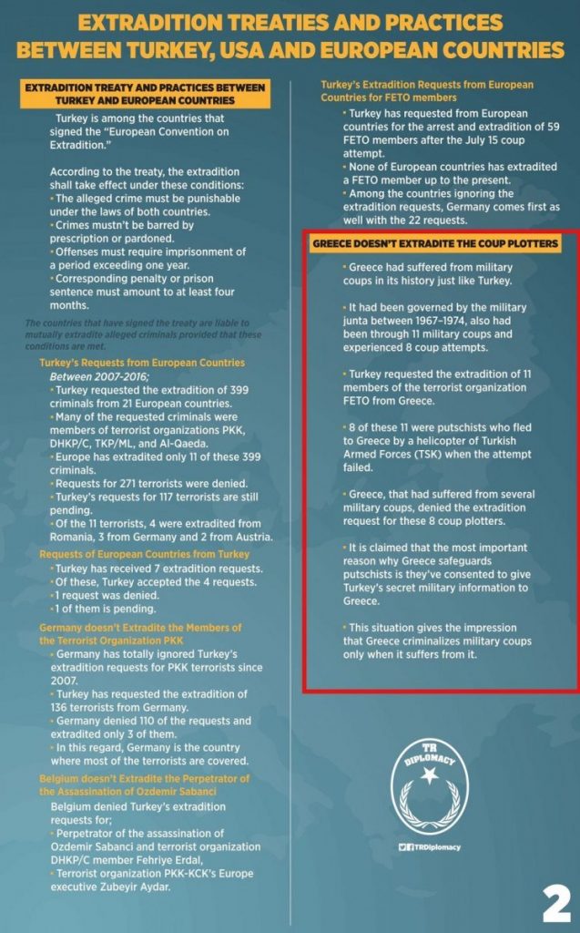 Στο κείμενο αυτό η Άγκυρα παρουσιάζει λίγο πολύ την Ελλάδα ως χώρα που τα πραξικοπήματα είναι συνήθη, ανακαλύπτει ότι υπάρχει και «δάκτυλος κατασκοπείας», υποστηρίζοντας ότι οι 8 συμφώνησαν να ανταλλάξουν την μη έκδοση τους με την αποκάλυψη στρατιωτικών πληροφοριών για τις Τουρκικές Ένοπλες Δυνάμεις στις ελληνικές αρχές.