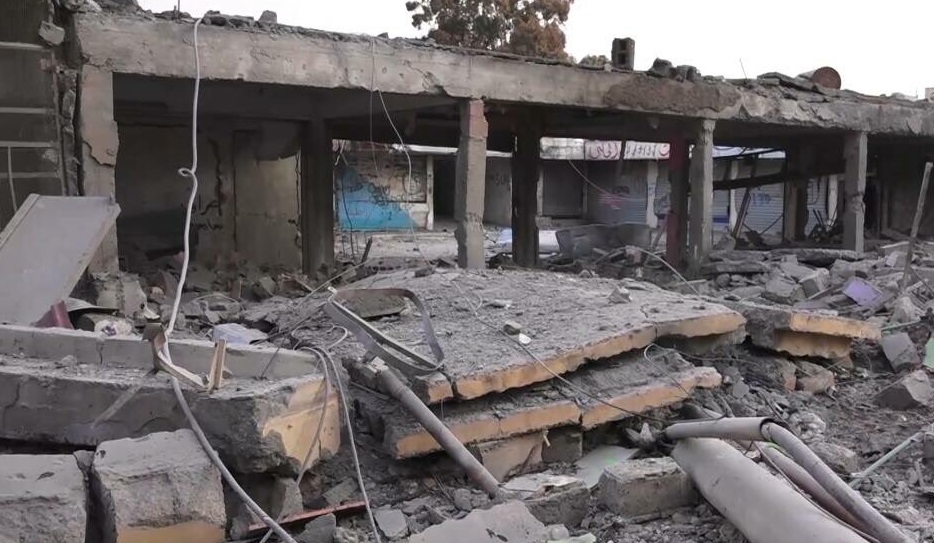 Ένα βίντεο που δημοσίευσε το Amaq έδειχνε εκτεταμένες ζημιές σε εμπορικό κέντρο στην πόλη.