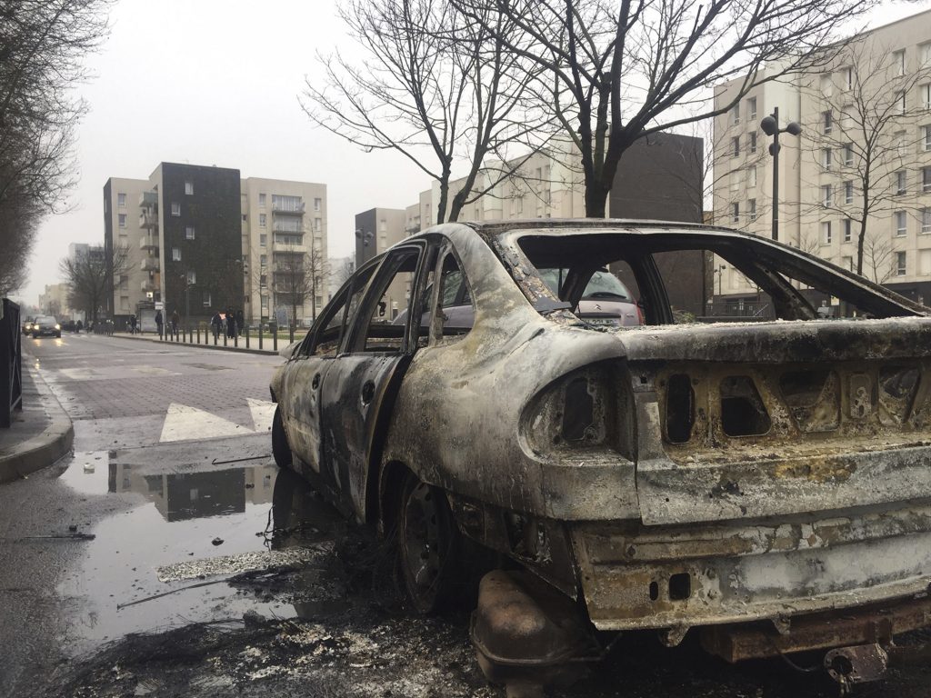 Στο Ολνέ-σου-Μπουά, όπου το ποσοστό της ανεργίας ανέρχεται σε 19%–σχεδόν διπλάσιο από τον εθνικό μέσο όρο–νεαροί επιτέθηκαν με βόμβες μολότωφ εναντίον αστυνομικών οι οποίοι απάντησαν με δακρυγόνα γύρω από κτίρια που είχαν κατασκευαστεί στα τέλη του ’60 για να στεγάσουν εργάτες σε εργοστάσιο αυτοκινήτων, το οποίο έκλεισε το 2013.