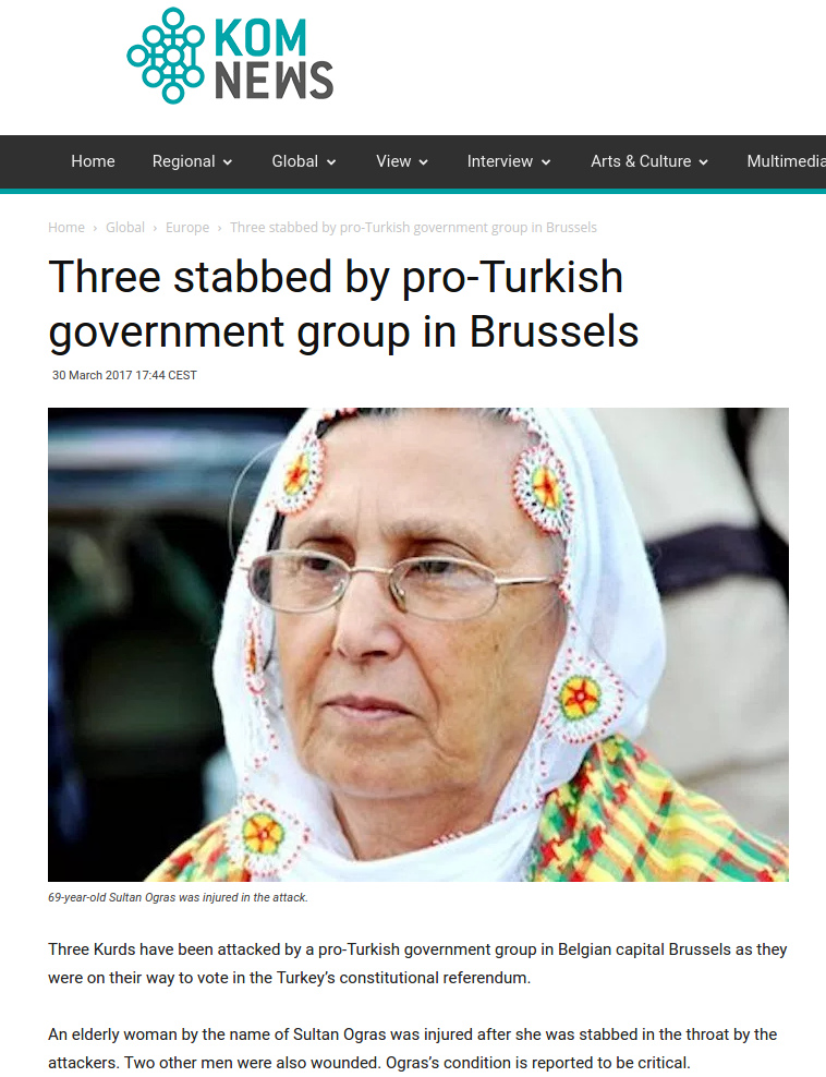 Τρεις Κούρδους μαχαίρωσαν οπαδοί του Ρετζέπ Ταγίπ Ερντογάν στις Βρυξέλλες, την ώρα που εκείνοι πήγαιναν να ψηφίσουν για το τουρκικό δημοψήφισμα.