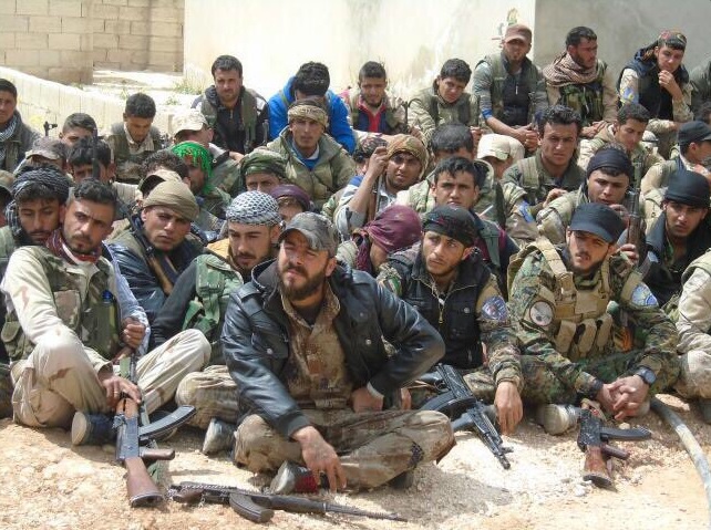 Νέοι μαχητές των SDF, που μόλις ολοκλήρωσαν την εκπαίδευσή τους και στάλθηκαν στην Τάμπκα για να πολεμήσουν ενάντια στο Ισλαμικό Κράτος. Οι άνδρες στη φωτογραφία εκπαιδεύτηκαν από το Στρατιωτικό Συμβούλιο της Μανμπίτζ, στα βόρεια της επαρχίας του Χαλεπιού.