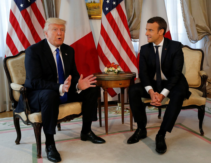 Με τη συνάντηση και με τη σύνοδο κορυφής του ΝΑΤΟ που θα ακολουθήσει, ο Εμανουέλ Μακρόν, ο οποίος εξελέγη στις 7 Μαΐου και ανέλαβε καθήκοντα στις 14, κάνει τα πρώτα βήματά του στη διεθνή διπλωματική σκηνή.