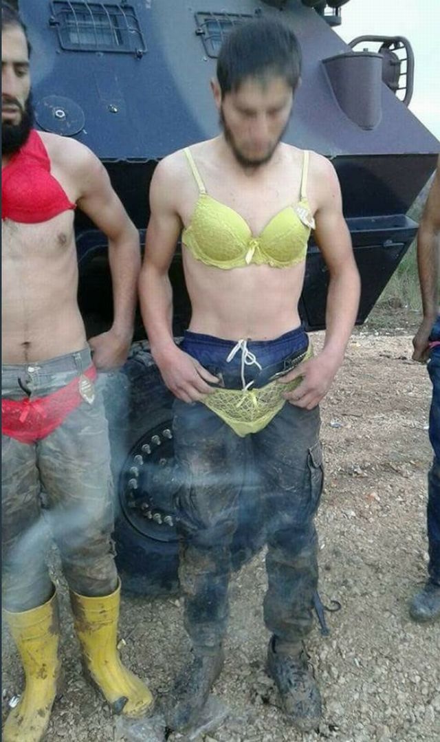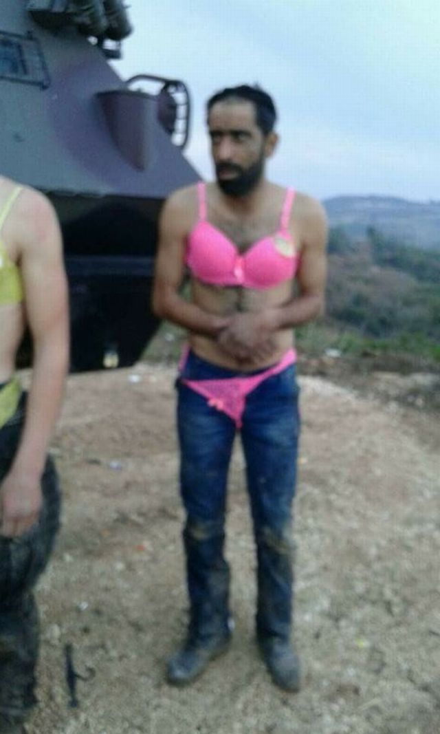 Τούρκοι στρατιώτες, στα στα σύνορα Συρίας-Τουρκίας, έπιασαν Σύρους πρόσφυγες που προσπαθούσαν να εισέλθουν παράνομα στη χώρα και τους έντυσαν με γυναικεία εσώρουχα.