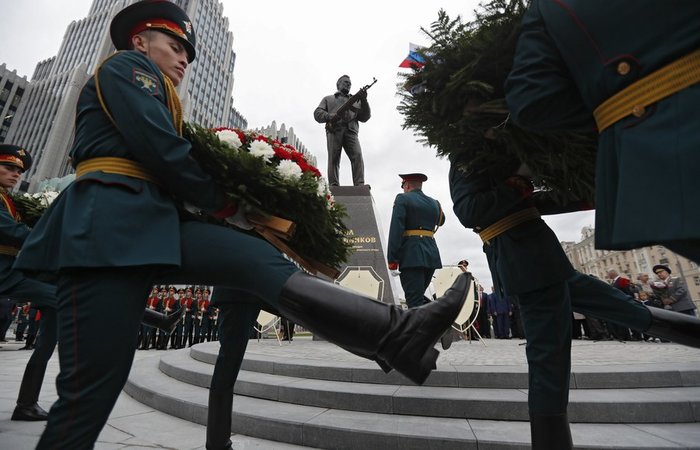 Στη Μόσχα έγιναν την Τρίτη τα αποκαλυπτήρια του αγάλματος του Μιχαήλ Καλάσνικοφ, που σχεδίασε το γνωστό σε όλον τον κόσμο αυτόματο όπλο, το οποίο έγινε ένα «πολιτιστικό σήμα κατατεθέν της Ρωσίας», όπως τόνισε ο Ρώσος υπουργός Πολιτισμού, ο οποίος παρέστη στην τελετή των αποκαλυπτηρίων. Τα αποκαλυπτήρια έκανε η κόρη του Καλάσνικοφ, η Ελένα.