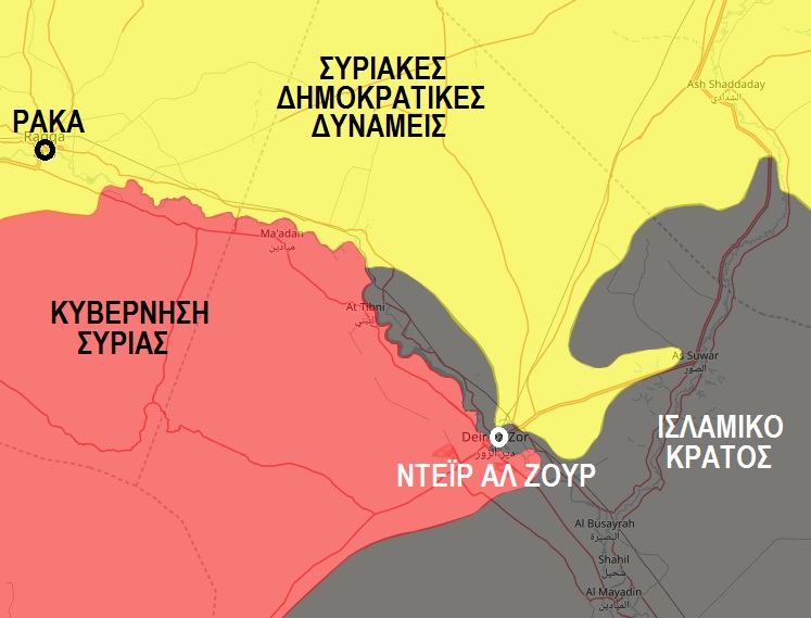Δείτε τον πολεμικό χάρτη γύρω από την περιοχή της πόλης Ντέιρ Αλ Ζουρ: