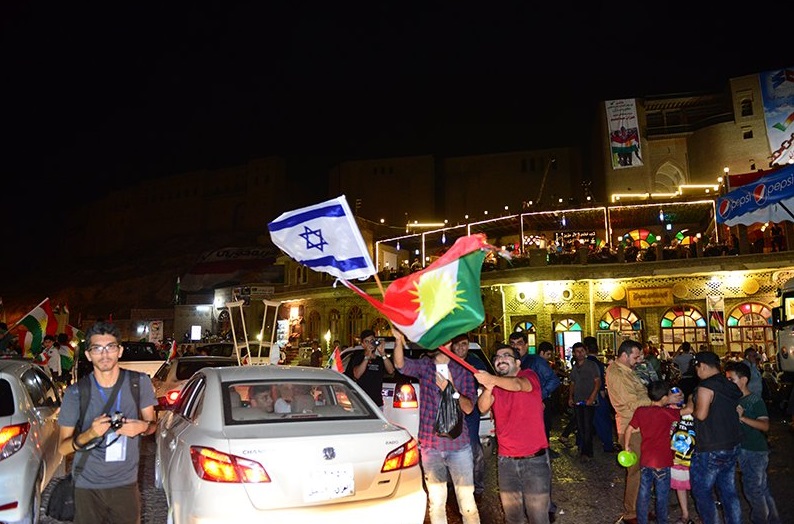 Ανάμεσά τους πάμπολλοι που κρατούσαν ισραηλινές σημαίες, μιας και το Ισραήλ είναι το μοναδικό κράτος που επίσημα υποστήριξε τόσο τη διεξαγωγή του δημοψηφίσματος όσο και την ανεξαρτησία του Κουρδιστάν.