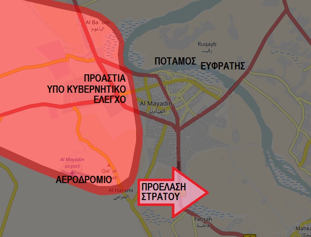 Νεώτερες πληροφορίες αναφέρουν ότι οι κυβερνητικές δυνάμεις έχουν περικυκλώσει πλήρως την Αλ Μαγιαντίν και οι τζιχαντιστές που βρίσκονται μέσα σε αυτή δεν μπορούν να διαφύγουν.
