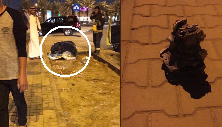 Ερασιτεχνικά βίντεο και φωτογραφίες που αναρτήθηκαν στα μέσα κοινωνικής δικτύωσης δείχνουν κομμάτια πυραύλου διάσπαρτα στους δρόμους του Ριάντ.