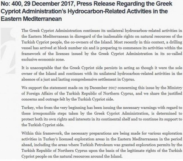 Και πάλι όμως, η κυπριακή αντίδραση χαρακτηρίζεται από το δημοσίευμα ως «ανεπαρκής» και περιορίστηκε στην εξασφάλιση κάποιων φραστικών υποδείξεων από την ΕΕ προς την Άγκυρα για σεβασμό της κυριαρχίας και των κυριαρχικών δικαιωμάτων της Κυπριακής Δημοκρατίας.