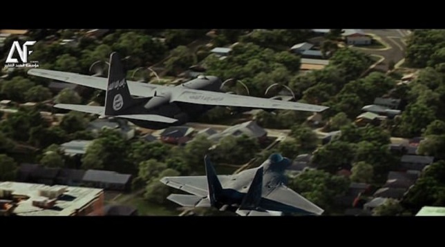 Μετά δείχνει τους πολεμιστές του ISIS να επιτίθενται στην πόλη, ενώ τα μαχητικά βομβαρδίζουν αμάχους.