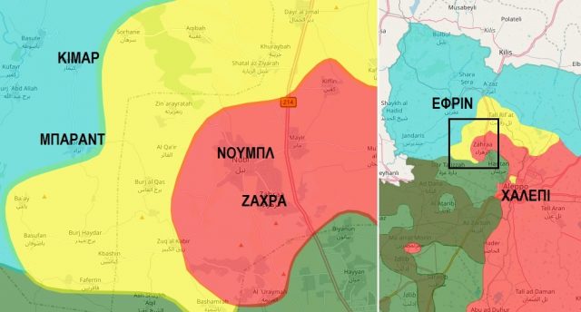 Οι τελευταίες πληροφορίες αναφέρουν ότι πλέον οι τουρκικές δυνάμεις απέχουν μόλις λίγα χιλιόμετρα από τις συριακές κωμοπόλεις Αλ Ζαχρά και Νουμπλ, των οποίων οι εθνοφύλακες είχαν σπεύσει τις προηγούμενες εβδομάδες να υποστηρίξουν τους Κούρδους των Μονάδων Προστασίας του Λαού (YPG) στην Εφρίν.