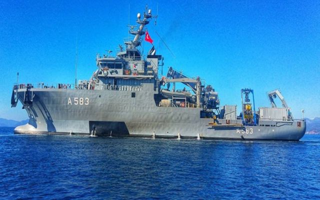 Στο σημείο βρέθηκε και το πλοίο διάσωσης υποβρυχίων που διαθέτει ο τουρκικός στόλος.