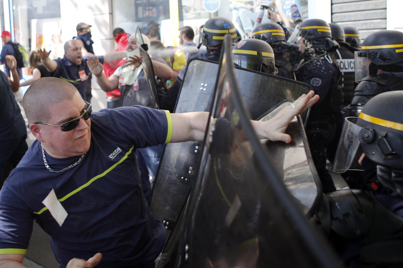 Λόγω των ταραχών, το μπλοκ του συνδικάτου CGT αναγκάστηκε να σταματήσει την πορεία του.