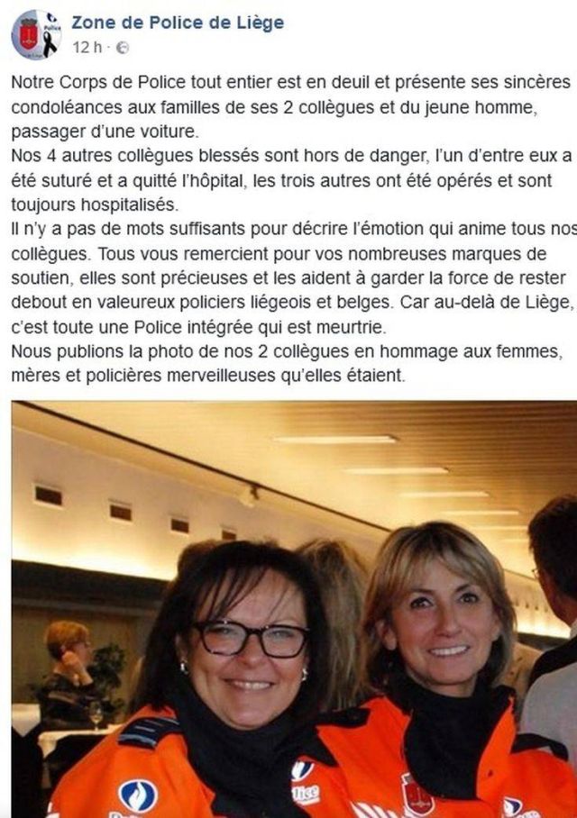 Η Αστυνομία της Λιέγης ανέβασε στην επίσημη σελίδα της στο Facebook τις φωτογραφίες των δύο αστυνομικών. Η 45χρονη Lucile Garcia ήταν σύζυγος του αρχηγού του αστυνομικού Σώματος και η 56χρονη συνάδελφός της ήταν μητέρα διδύμων.