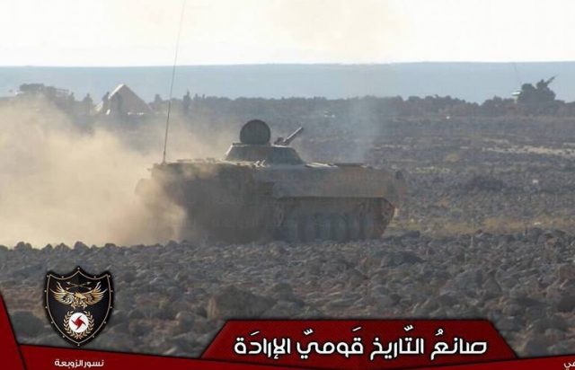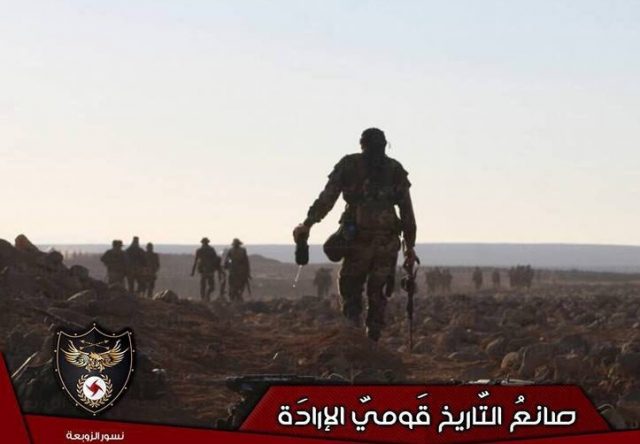 Ο συριακός τακτικός στρατός υποστηριζόμενος από παραστρατιωτικές μονάδες της εθνοφυλακής και του Συριακού Σοσιαλιστικού Εθνικιστικού Κόμματος (SSNP), κερδίζει συνεχώς έδαφος εις βάρος του θύλακα των τζιχαντιστών στην περιοχή Μπαντίγια Αλ Σαμ στην ανατολική Συρία.