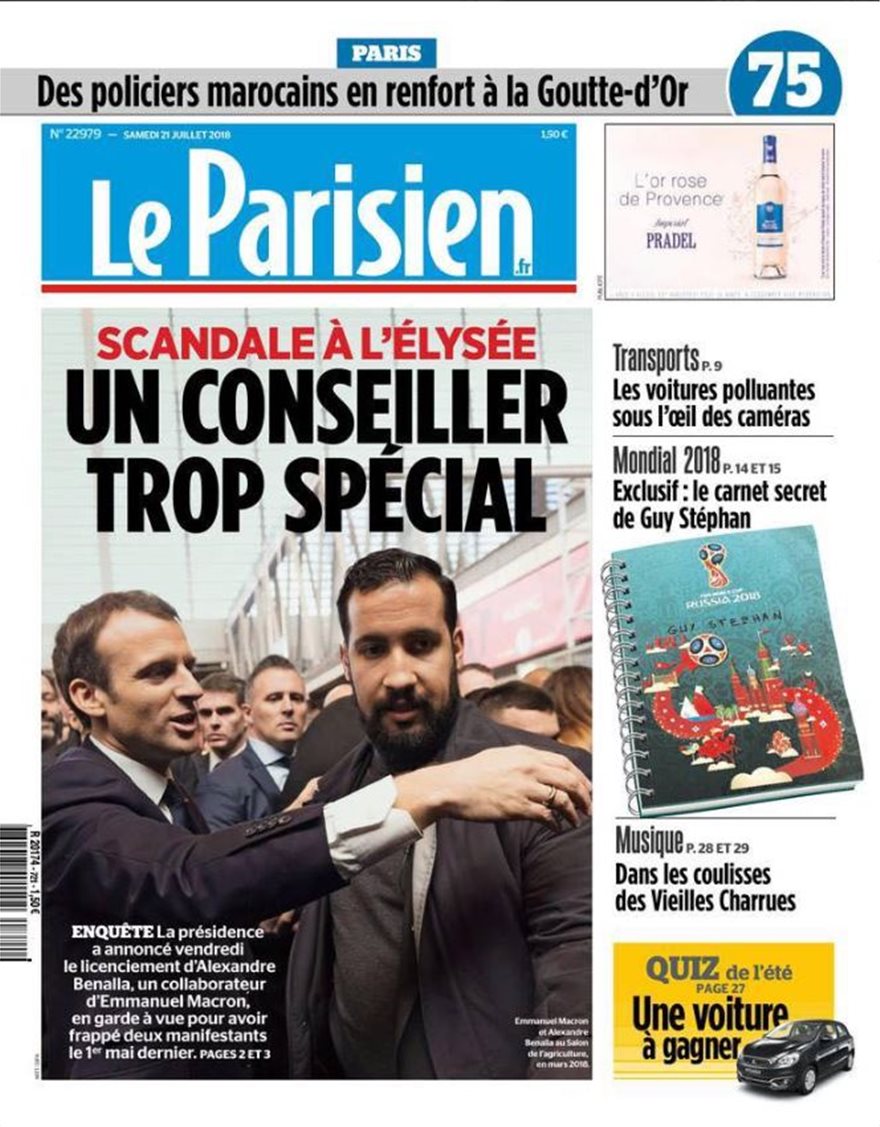 Η Le Parisien κάνει λόγο για «Σκάνδαλο στο Ελιζέ» από «έναν πολύ ιδιαίτερο σύμβουλο».