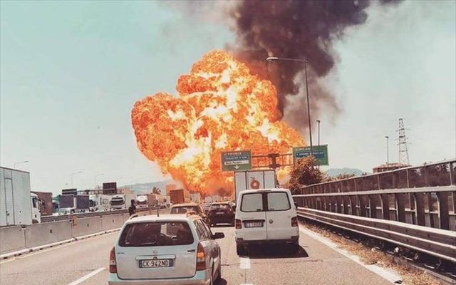 Σύμφωνα με τις πρώτες εκτιμήσεις της αστυνομίας, πρόκειται για ατύχημα με όχημα που μετέφερε εύφλεκτα ηλικά στον αυτοκινητόδρομο κοντά στο αεροδρόμιο.