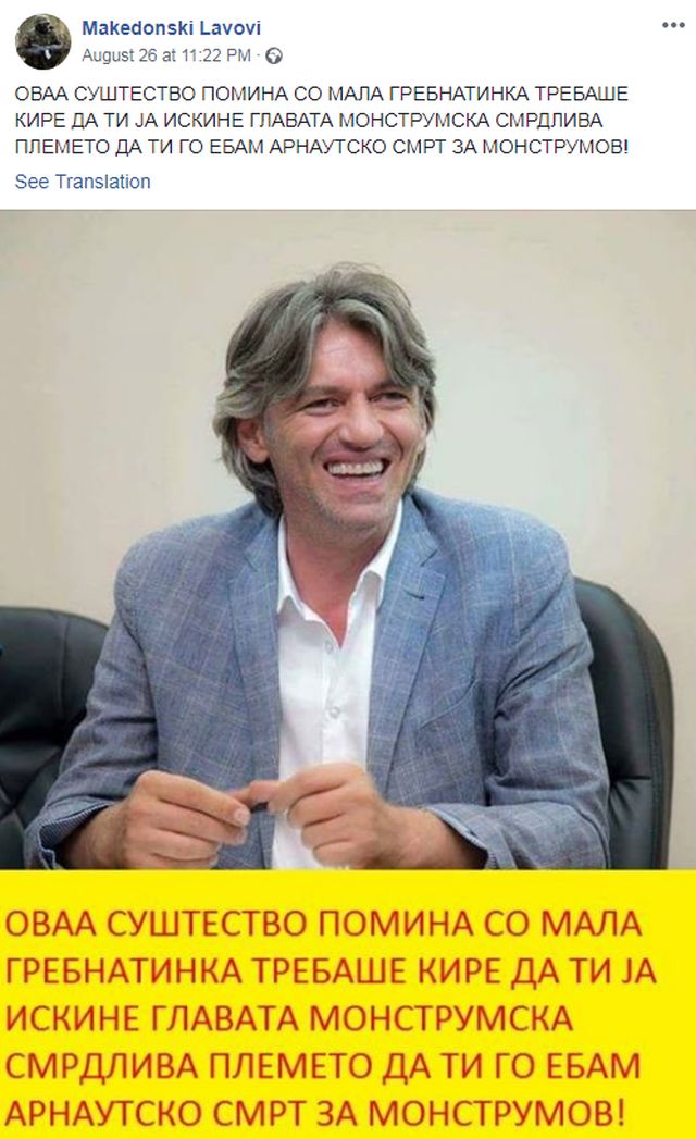 Η απειλή εμφανίσθηκε σε ανάρτηση του σλαβικής ομάδας, λίγες ώρες μετά τη δημόσια δήλωσή του, ότι πριν από τις συνταγματικές αλλαγές στη χώρα πρέπει να γίνει πρώτα μια τελική συμφωνία μεταξύ των «Μακεδόνων» και των Αλβανών για την «άπαξ δια παντός» παύση των εσωτερικών συγκρούσεων μεταξύ των πολιτών της «Δημοκρατίας της Μακεδονίας», όπως αναφέρεται.