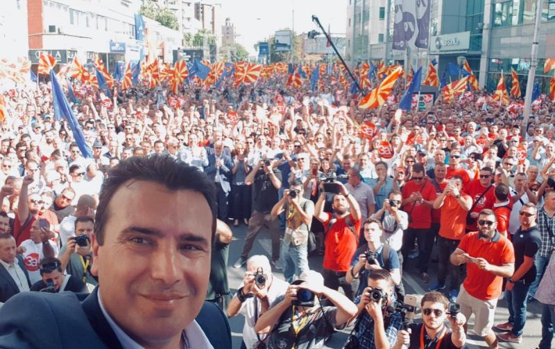 Σε δεύτερη ανάρτησή του, ο Σκοπιανός πρωθυπουργός ανέβασε μία σέλφι από προεκλογική συγκέντρωση υπέρ του «ναι» με λεζάντα: