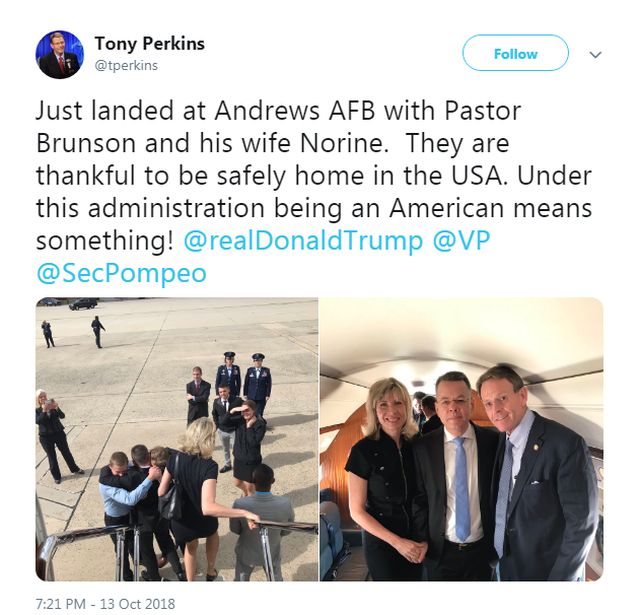 Στην Ουάσιγκτον προσγειώθηκε ο Άντριου Μπράνσον, ο οποίος την Παρασκευή αφέθηκε ελεύθερος από την τουρκική δικαιοσύνη, έπειτα από δύο χρόνια κράτησης και κατ’ οίκον περιορισμού.