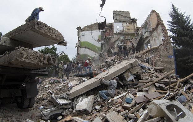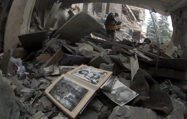 Οι εικόνες θυμίζουν Λωρίδα της Γάζας όμως προέρχονται από την πόλη Σνίτζνε στην Ανατολική Ουκρανία, που βρίσκεται υπό τον έλεγχο των φιλορώσων αυτονομιστών.