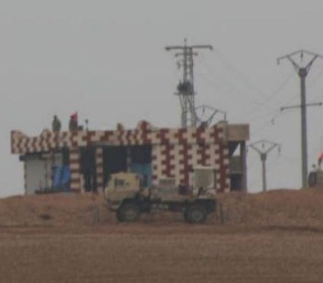 Στη φωτογραφία βλέπετε το πρώτο συνοριακό φυλάκιο-παρατηρητήριο που εγκατέστησαν οι Αμερικανοί στα σύνορα Συρίας-Τουρκίας, από τη μεριά του συριακού εδάφους που ελέγχουν οι Κούρδοι.
