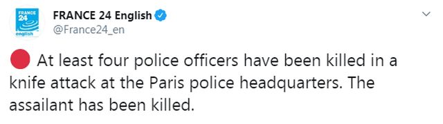 Τέσσερις Γάλλοι αστυνομικοί σφάχτηκαν με μαχαίρι από πρώην συνάδελφό τους μέσα στο Αρχηγείο της Αστυνομίας στο Παρίσι.