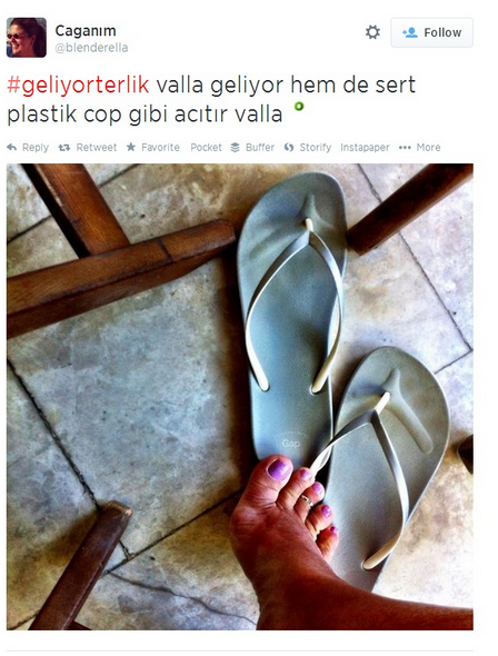 Στο Twitter γνωρίζει μεγάλη επιτυχία μία εκστρατεία με τον τίτλο “έρχεται η παντόφλα” (#geliyorterlik), μία έκφραση που χρησιμοποιούν πολλές τουρκάλες στα παιδιά τους για να φέρονται σωστά.