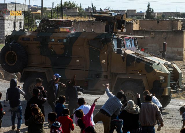 Άμαχοι Κούρδοι πήραν με τις πέτρες τουρκικά τεθωρακισμένα κοντά στην Κομπάνι (βίντεο)