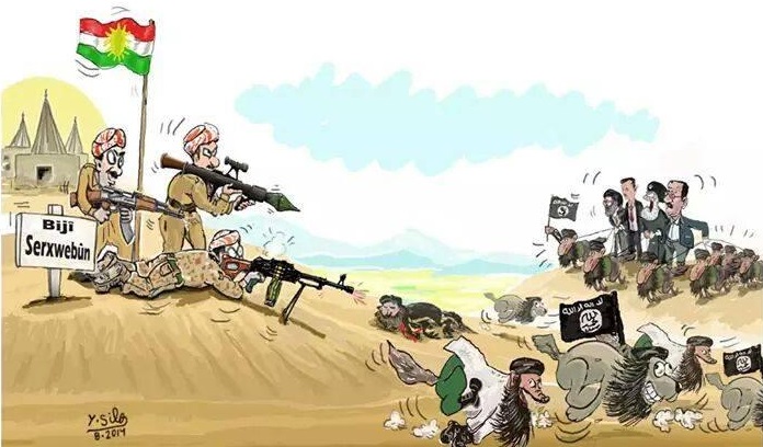 Γελοιογραφία που κυκλοφορεί στο twitter – “Οι Κούρδοι κατατροπώνουν τα ισλαμικά σκυλιά”