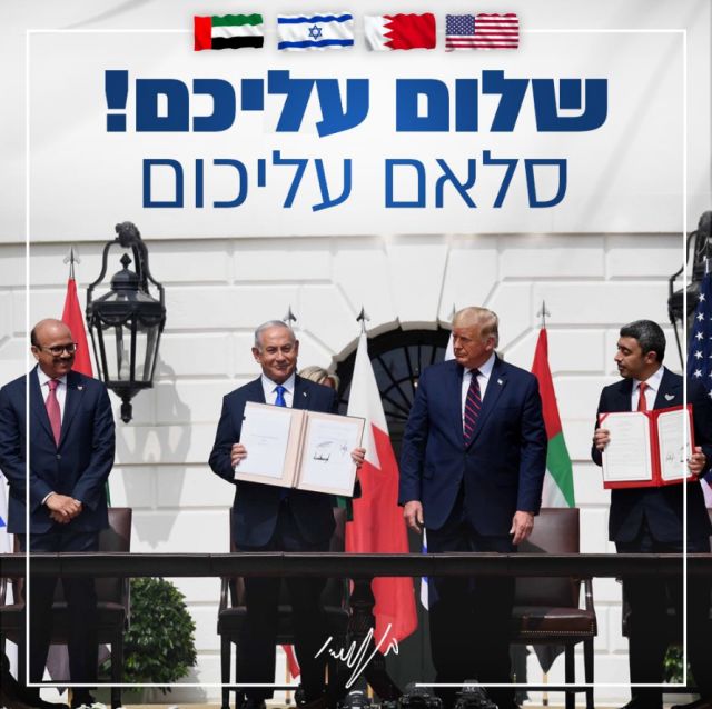 Για την ανάδυση «μιας νέας Μέσης Ανατολής» μίλησε από τον Λευκό Οίκο ο πρόεδρος των ΗΠΑ, Ντόναλντ Τραμπ, τη στιγμή της υπογραφής των ιστορικών συμφωνιών κατανόησης από το Ισραήλ, τα Ηνωμένα Αραβικά Εμιράτα και το Μπαχρέιν την Τρίτη 15 Σεπτεμβρίου.